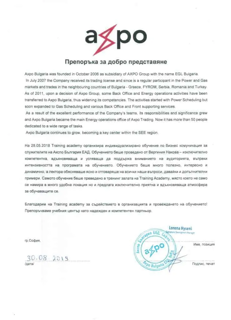 Ето какво сподели екипът на Акспо България, след проведеното обучение: